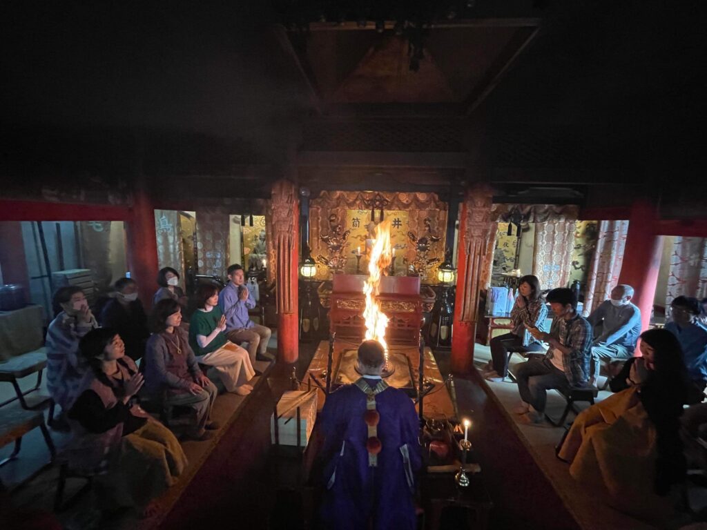 再び龍泉寺に戻り、大塚住職のご指導のもと伝統的な護摩祈祷も受けます。
