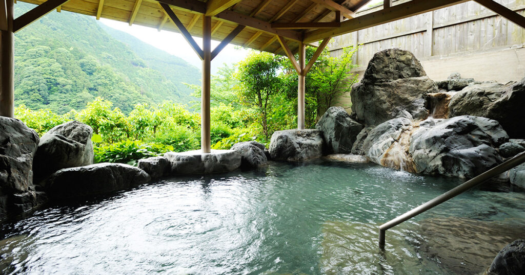 絶景の露天風呂が楽しめる、本日の宿「ホテル杉の湯」。